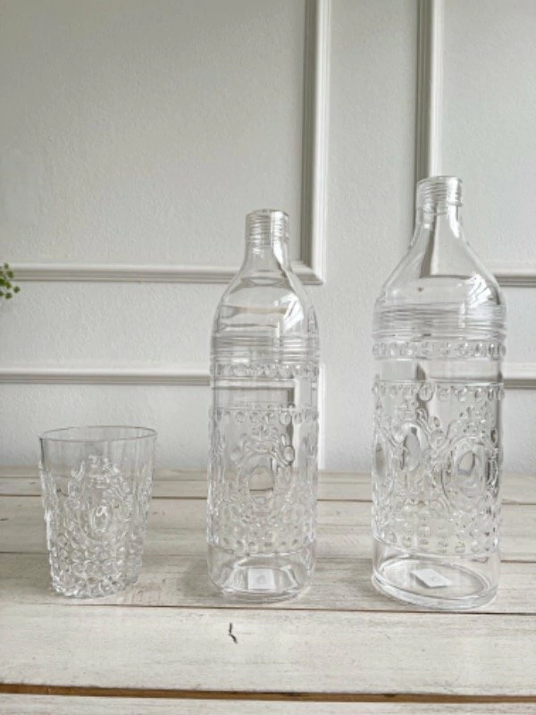 Hermosa botella realizada en acrílico de alta densidad, inspirada en las antiguas jarras de cristal.Ideal para disfrutar en cualquier ocasión y cualquier tipo de bebida.Increíble calidad y durabilidad !