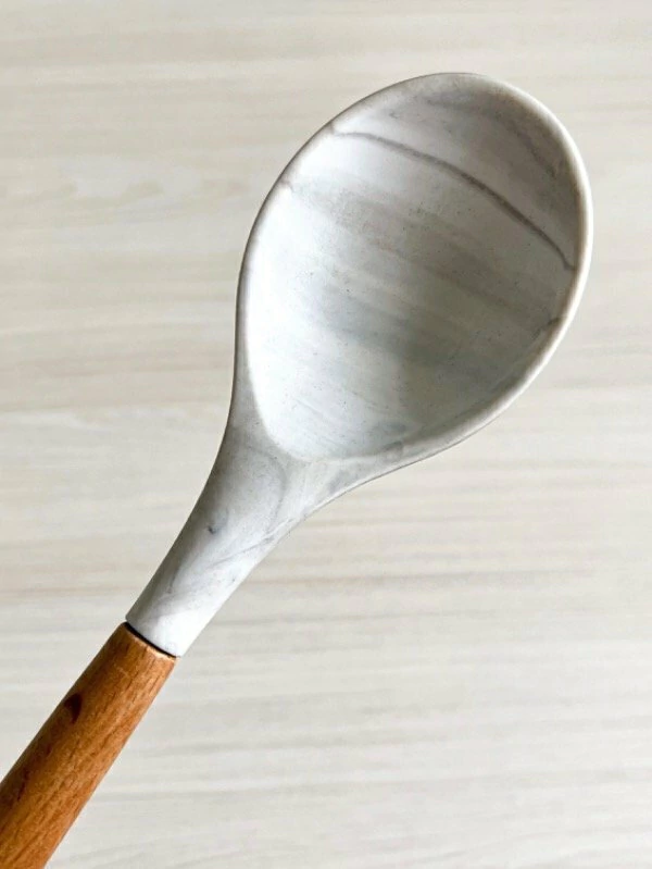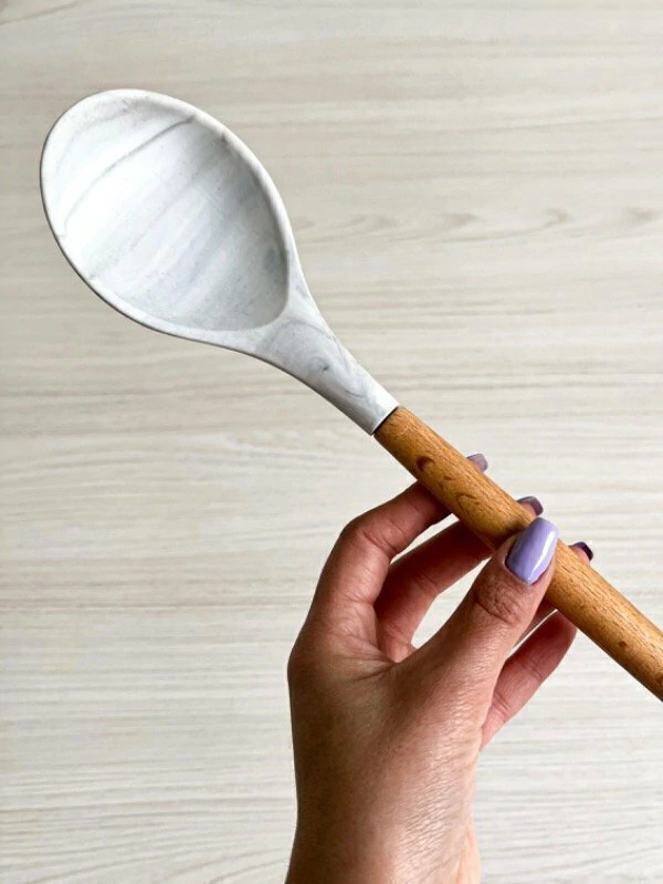 CUCHARA SILICONA SIMIL MÁRMOL CABO MADERA