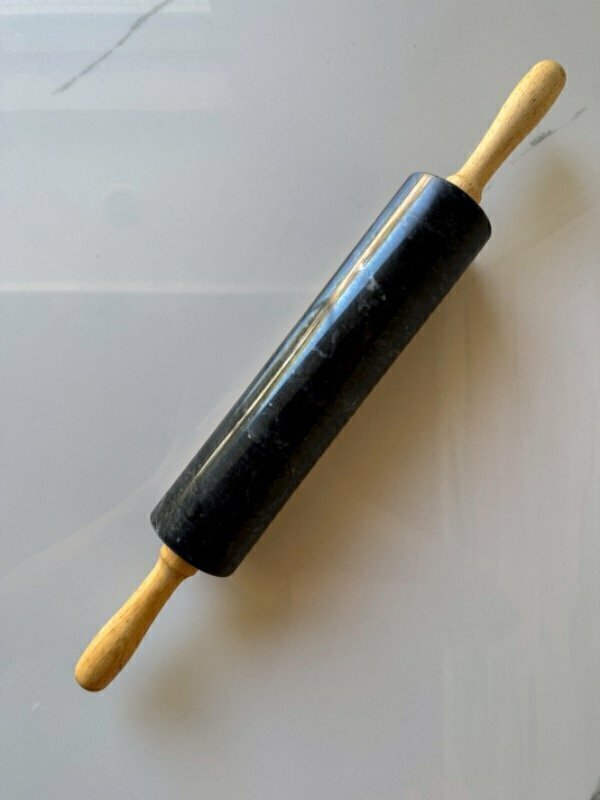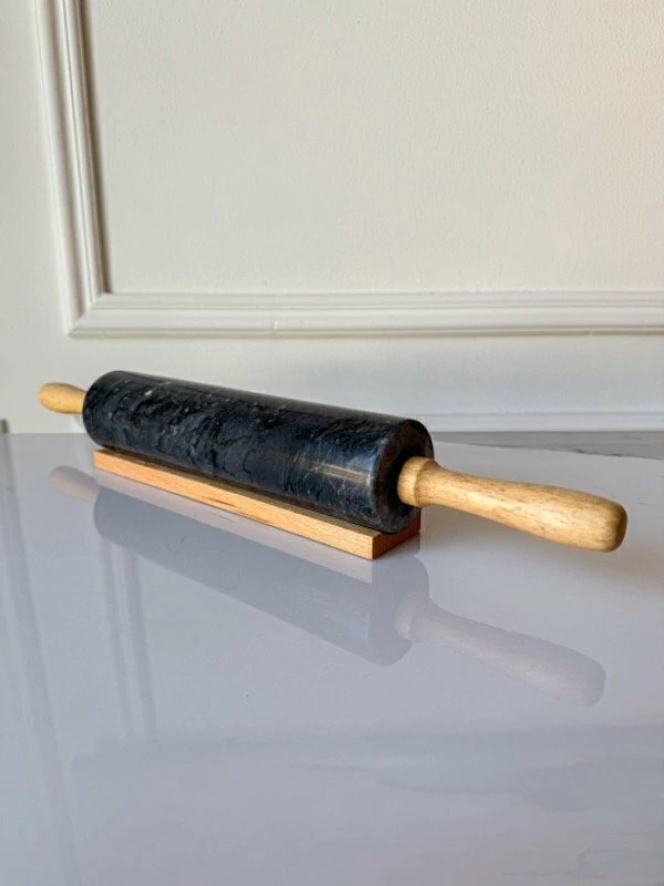 Espectacular palo de amasar realizado en mármol con agarradera de madera y ahora base para apoyar.