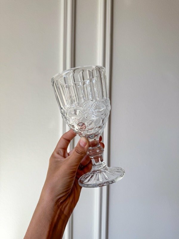 copa de vidrio labrado, ideal para vestir cualquier propuesta. Vienen en set x 2 y de ahí pueden llevar la cantidad que deseen.