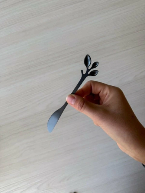 Novedoso untador de acero dorado con detalle de hojitas al final.