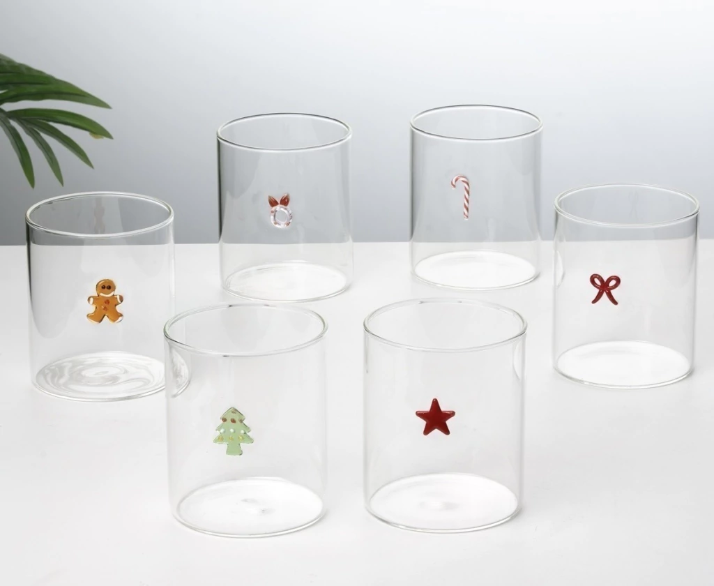 Descubrí nuestro vaso de borosilicato con detalle decorativo temática navidad, ideal tanto para tus mesas navideñas como para decorar tus espacios.